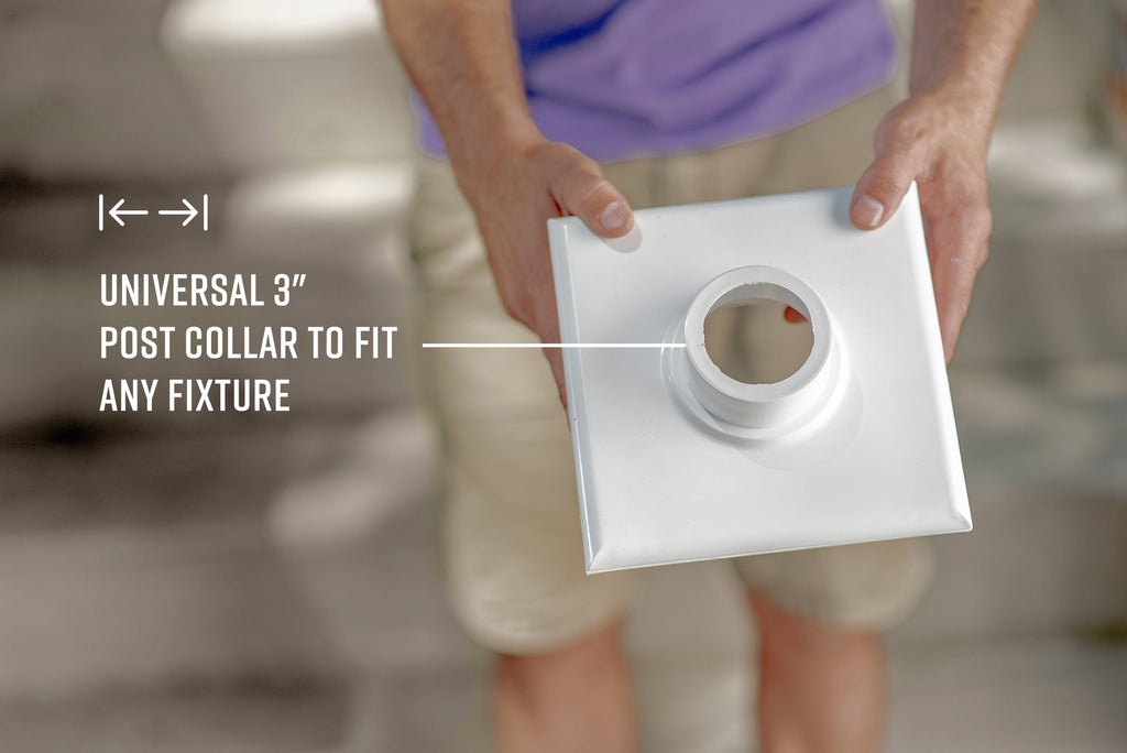 Our lamp posts are designed with a 3” universal collar that will fit any lamp fixture with a 3” fastener.