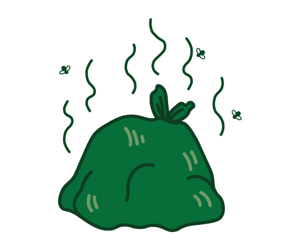 Flies are attracted to rotting food on top of your compost. To avoid this, mix and bury your food waste within the existing material in your composting system, or add a layer of brown materials such as leaves, shredded paper, or sawdust on top of each layer of food waste.